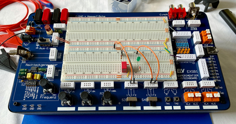 Zum Einsatz kommt wieder das Experimentier-Steckboard