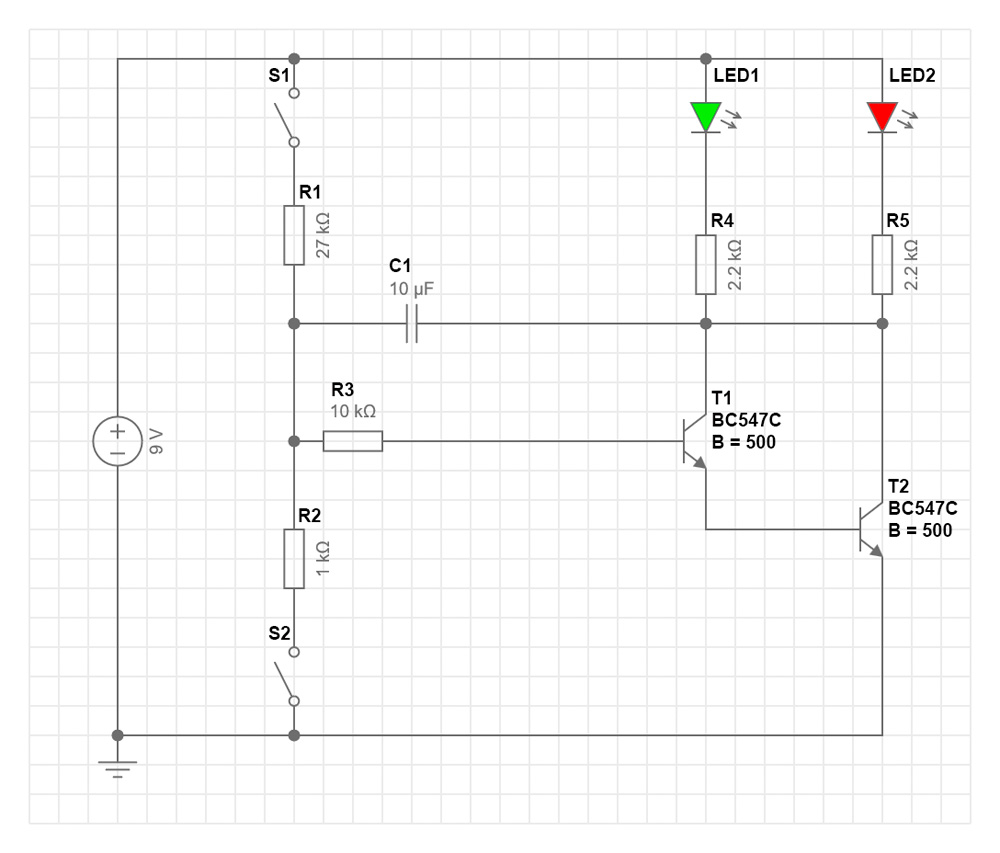 von T1 und T2 ab. Beide Transistoren sperren, da über R3 kein Basisstrom in die
