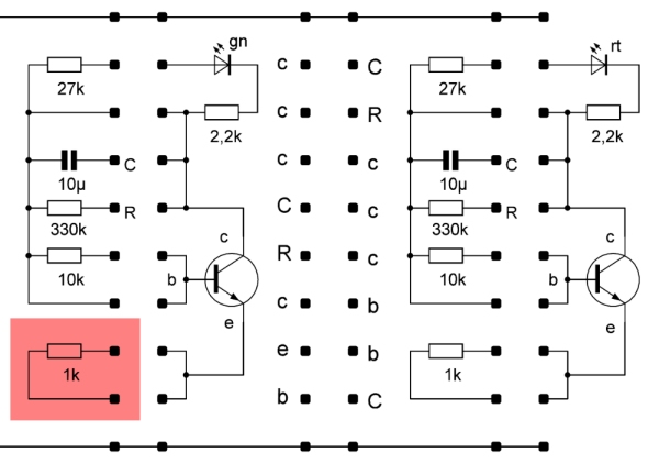 wurde der 1-k-Widerstand unten links. Deshalb ergibt sich eine Gerade.