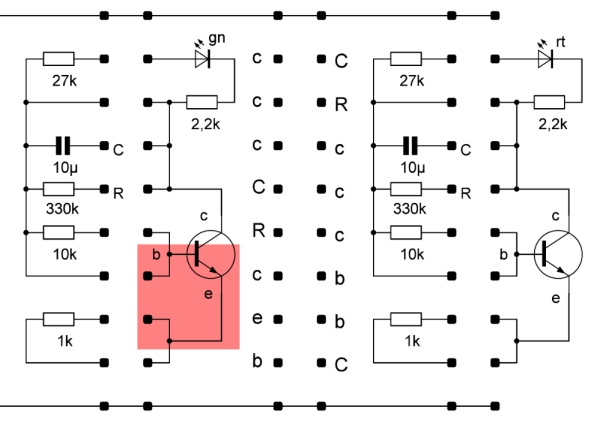 wurde die BE-Diode des linken NPN-Transistors. Der rechte Transistor