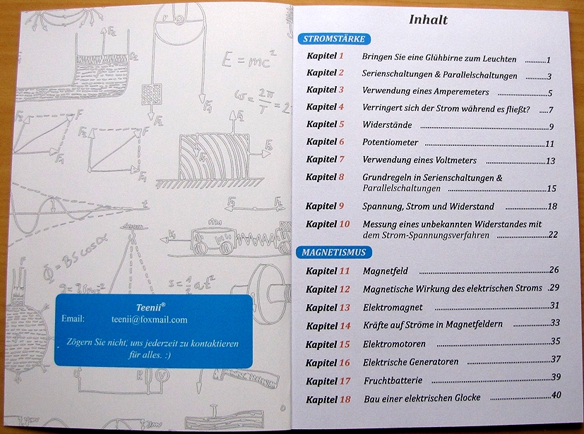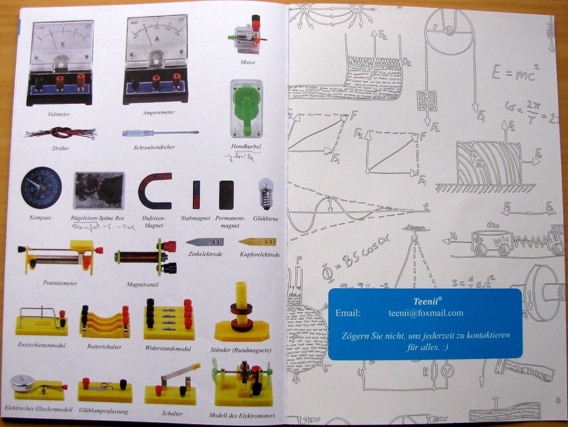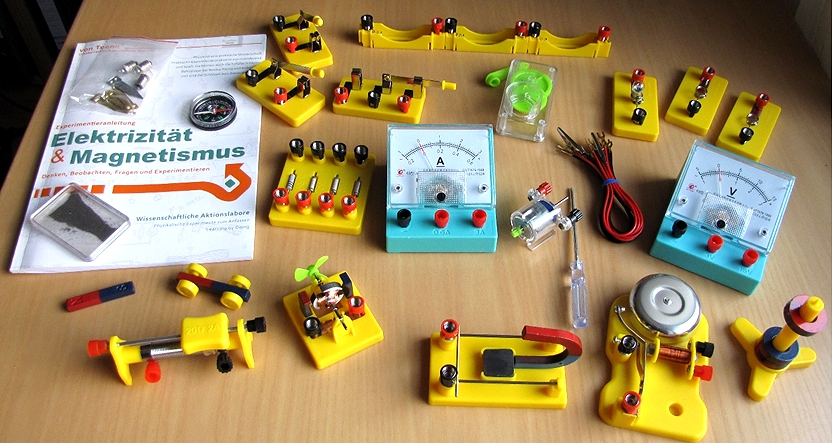 Ohm), 1 Elektromagnet, 1 Kompass, 1 Elektromotormodell, 1