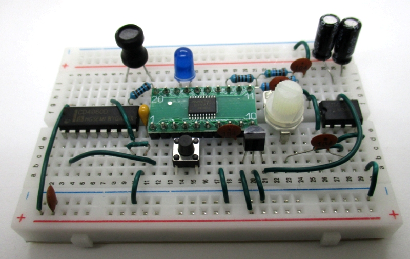 Also der verstimmbare LC-Oszillator ist mit einem CD4060 aufgebaut und