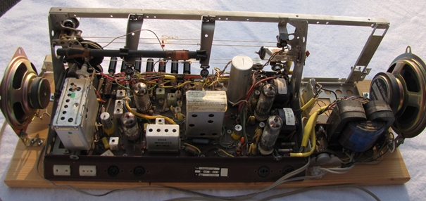 einen Röhrenempfänger aus den 1950er oder 1960er Jahren stehen, der durch