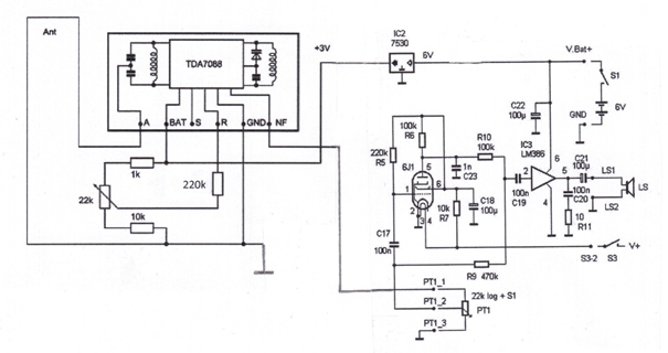 UKW-Moduls (B. Kainka 2012) mit dem Röhrenvorverstärker und dem LM386-Audioverstärker