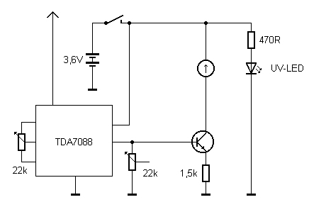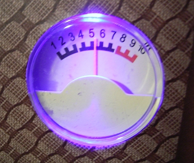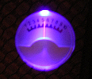 einer UV-LED aus dem Conrad-Adventskalender 09 eingebaut. Der Zeiger