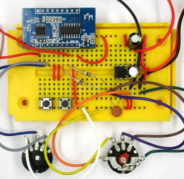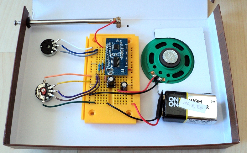 Noch angenehmer sind die gespeicherten Frequenzen, wenn das Radio später in sein Gehäuse eingebaut wird und dann mit dem Poti abgestimmt werden kann. Es gibt dann nämlich keine leeren Kanäle mehr auf der Skala, also kein lästiges Rauschen zwischen den Stationen wie bei älteren UKW-Radios.
