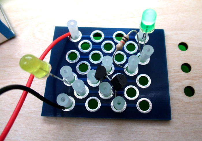 Rückkopplung. Das entstehende Signal wird von der LED angezeigt.