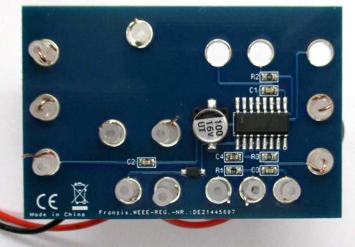 der Rückseite sieht man ein einzelnes IC, einen sechsfachen