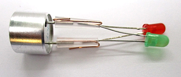vom Mikrofon aufgenommene Spannung reicht dann sogar aus, um die grüne LED