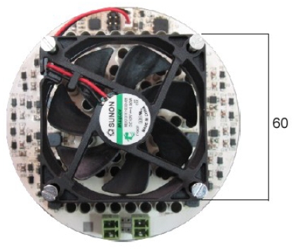 Rückseite montierter Ventilator saugt die entstehende LED-Abwärme von