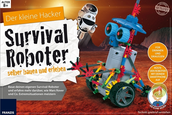 Ein neuer Bausatz aus der Serie: Der kleine Hacker. Der Körper besteht aus einem Getriebemotor mit Batterien und einem Vor-Stop-Rück-Schalter. Nach der Anleitung kann man sich daraus diesen netten kleinen Robbi bauen. Der Aufbau ist eine Herausforderung, man muss schon sehr genau hinsehen. Am Ende bleiben zahlreiche Bauteile übrig. Da kann man neue Ideen entwickeln und etwas ganz anders bauen. Mein erster Gedanke war übrigens eine ferngesteuerte drehbare Richtantenne. Aber auch ganz andere Fahrzeuge oder Roboter sind denkbar. Ein schönes Geschenk für Kinder (und jung gebliebene…), die damit ihre Geschicklichkeit und Kreativität üben können!