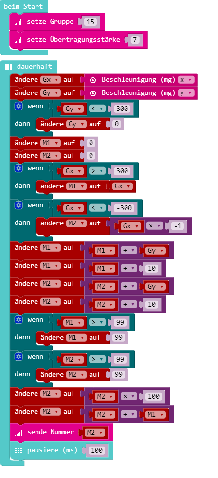 RC-Sender misst die Beschleunigung in x- und y-Richtung. Die Messwerte