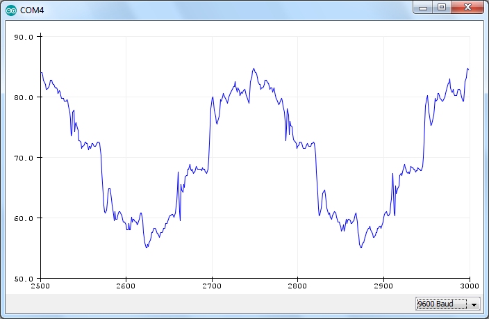 die Ausgabe wurde der serielle Plotter in der aktuellen Arduino-IDE