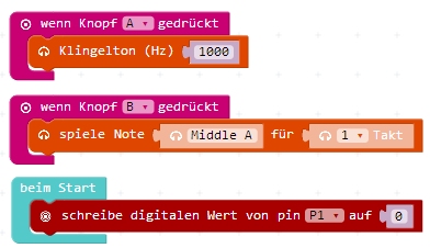 Befehle aus der Musik-Gruppe erzeugen Signale am Piezo-Lautsprecher des