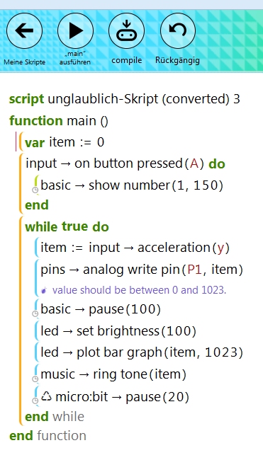 In der Form gibt das Programm nun analoge Werte als Tonhöhe aus.