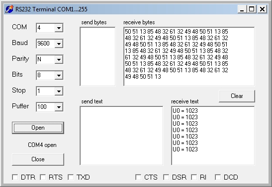 Terminal erscheint alles wie erwartet mit 9600 Baud. Hier kommen