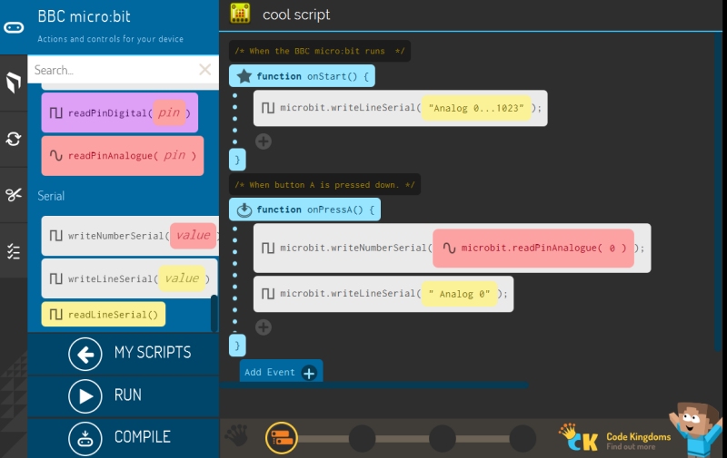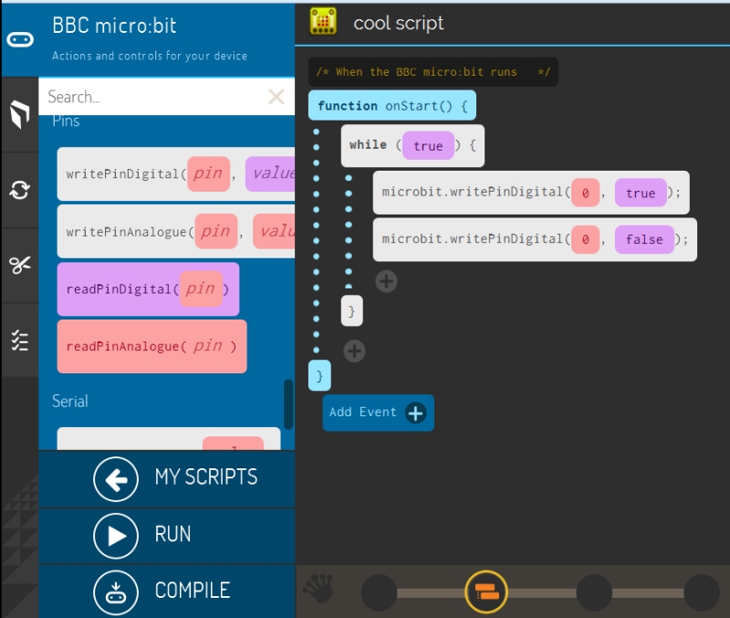 anders als in MicroPython kann man nicht einfach etwas eintippen, sondern ist