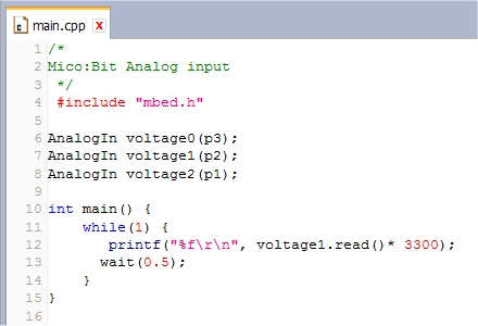 Anschlüsse zu den Ports sortiert werden. Der AD-Wandler liefert in Mbed