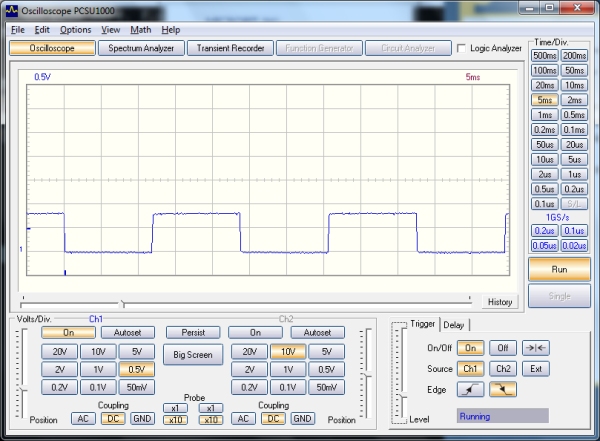 Der Test mit Python zeigt keine Sicherung. Die Portausgaben sind hier wesentlich schneller, was ja