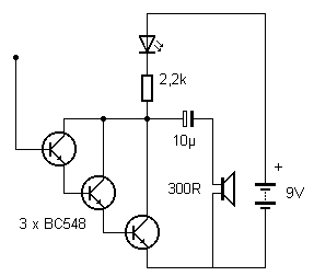 werden. Am Ausgang liegt die LED und über einen Elko der