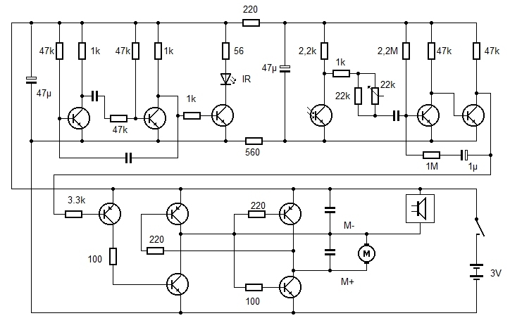 Multivibrator steuert die IR-Diode. Das reflektierte Signal