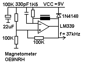 Schaltung erzeugt im Erdmagnetfeld einen Frequenzhub von ca. 2 kHz
