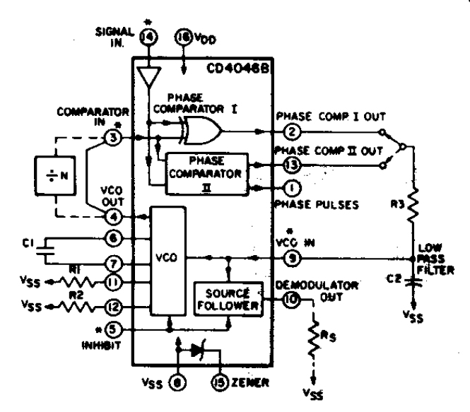 Der originale CD4046 unterscheidet sich in einem Punkt: Am Pin 15