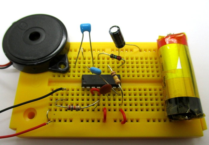 verkleinert. Eine Piezoschallwandler bringt einen gut hörbaren Tin. Der