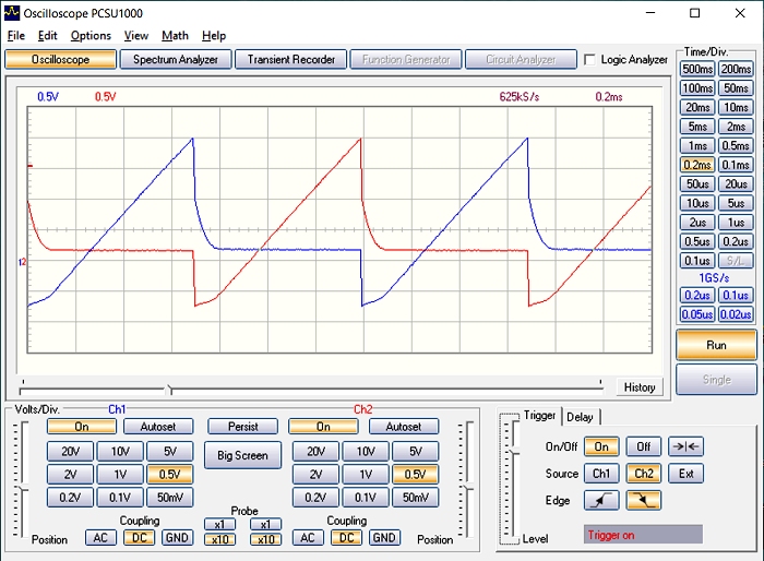 Um den VCO besser zu verstehen, habe ich die Signale an beiden Seiten