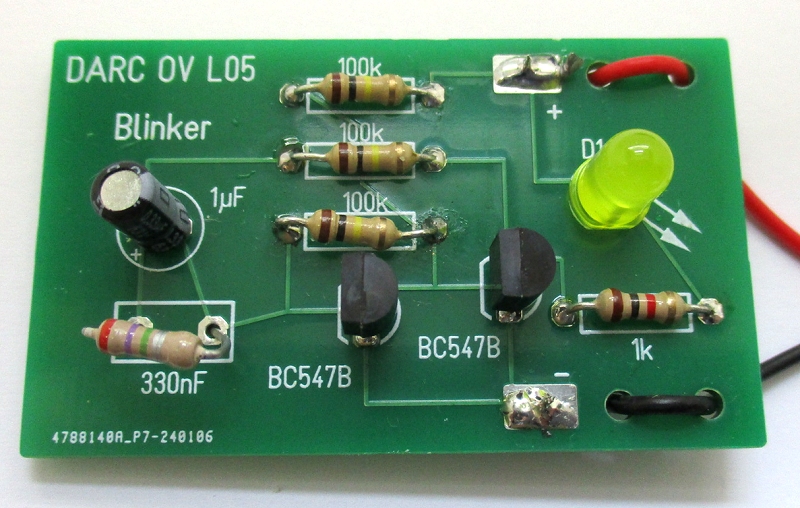 Netzteil. Der Blinker wurde mit einem Elko von 1 µF bestückt.