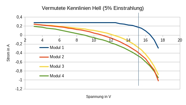 eines von 4 Modulen schien ok zu sein. Auch als dann direkte Sonne auf