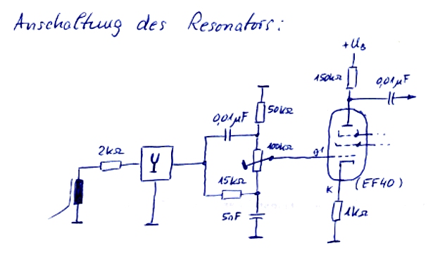 480Hz-Resonators einen NF-Generator und an die andere das Oszilloskop