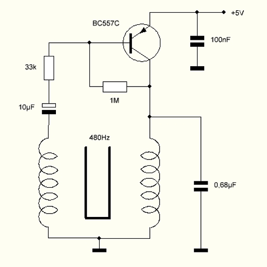 Von da war es nicht mehr weit bis zum Bau eines Stimmgabel-Oszillators.