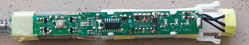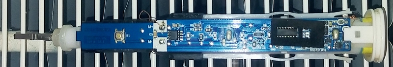 Anscheinend werkelt in allen drei Bürsten der Holtek HT48R063B o. ä. als MC, wobei