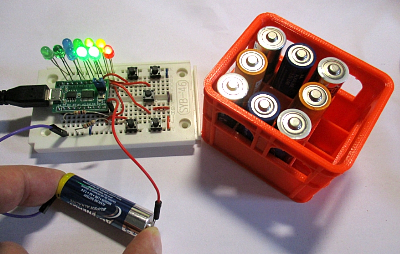 Das Programm BatTest misst die Spannung und vergleicht sie mit 1 V. Unter 1 V