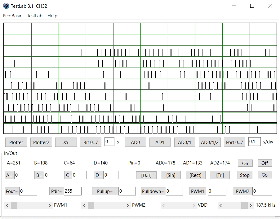 PicoBasic kennt nur zwei PWM-Ausgänge, aber hier werden acht gebraucht.