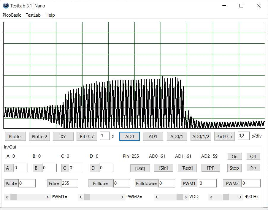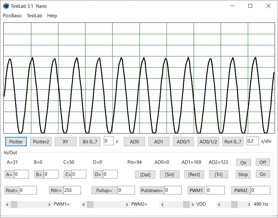 Als Beispiel wird hier das Programm Scope.pbas verwendet, das eine Unterabtastung eines 50-Hz-Signals durchführt.