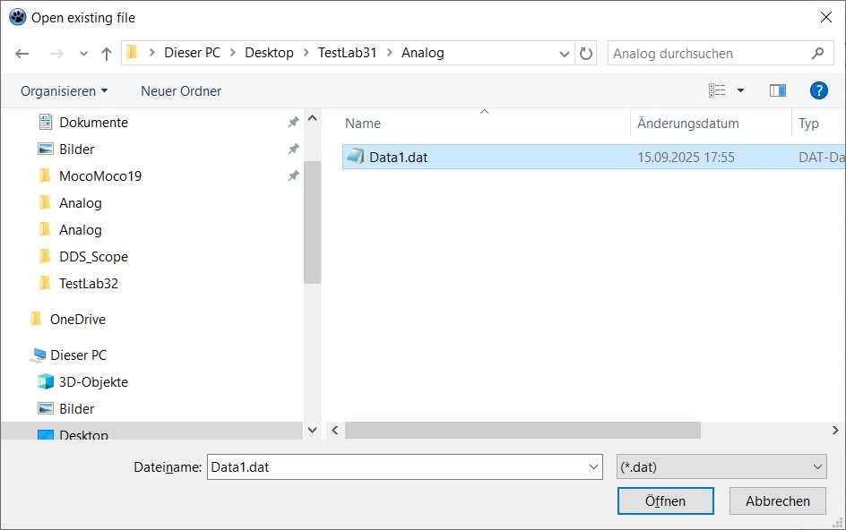TestLab gibt es neben Sin, Rect und Tri nun die Schaltfläche [Dat].