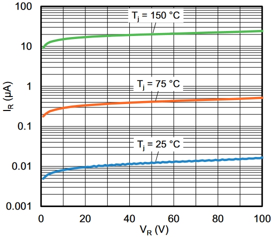 aufschlussreichsten ist das Datenblatt von Vishai. Der Sperrstrom ist