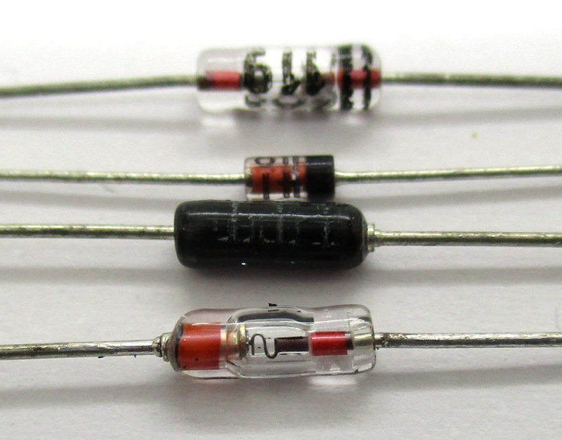 die älteren Germaniumdioden (ganz oben die AA119) erinnert. Die Dioden
