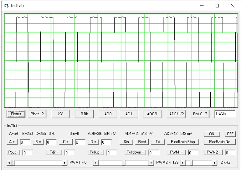 dazu die PWM-Frequenz 2 kHz eingestellt und PWM2 etwa auf die halbe