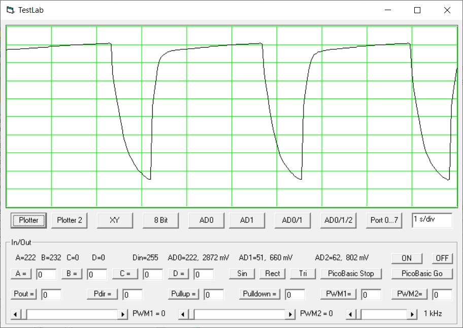 Beim Erreichen der Ladegrenze von 3 V wurde umgeschaltet. Hier
