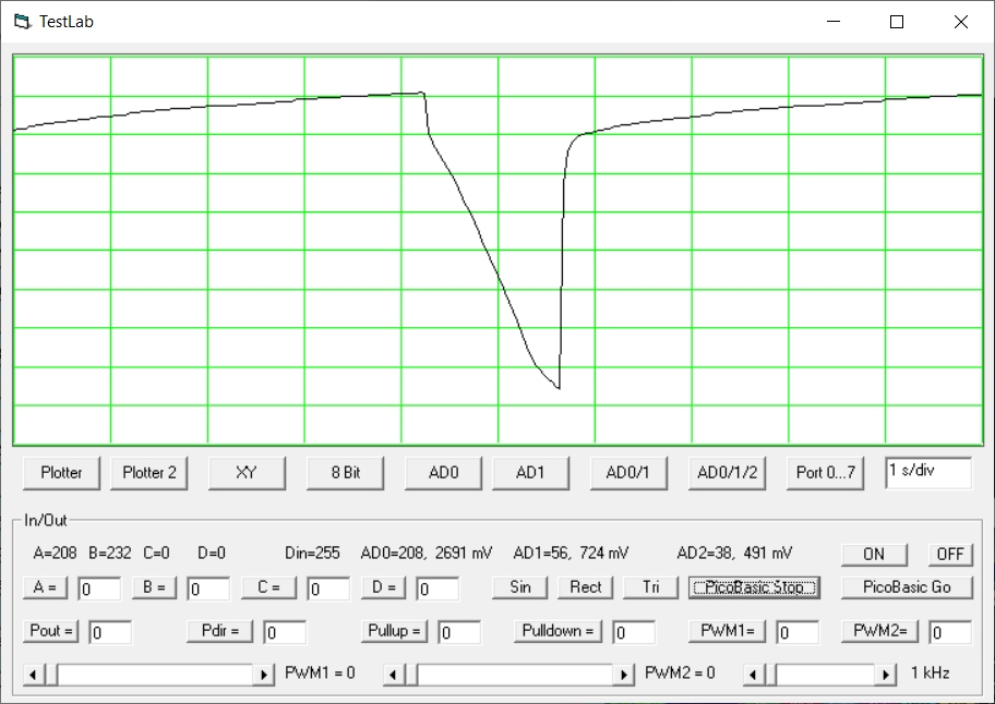 Anschluss wurde also durch den größeren Kondensator wieder nachgeladen.
