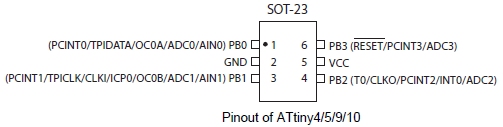 Zusätzlich sind die Anschlüsse Reset, TPIDATA und TPICLK an