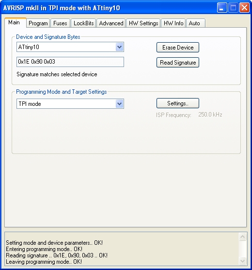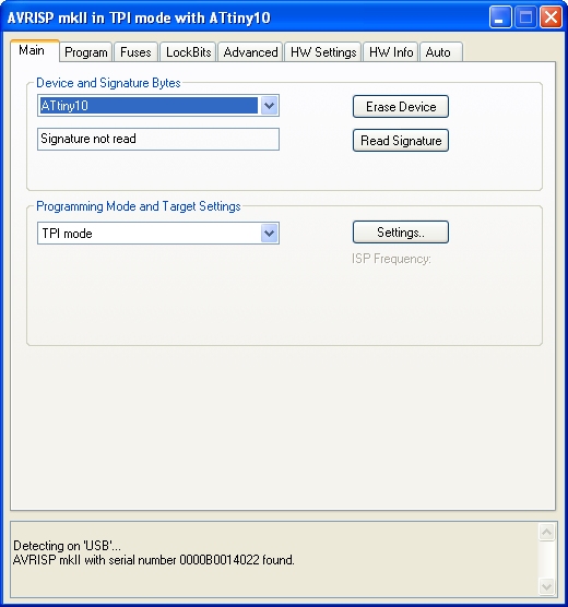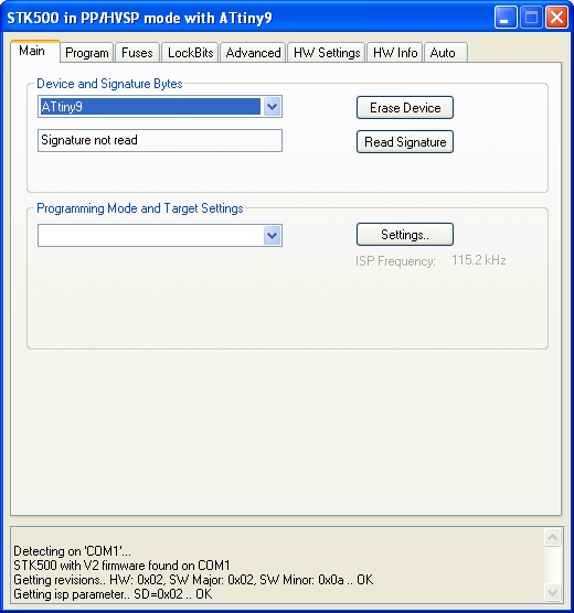 Programmiergerät angesteckt und AVR Tools gestartet. Und