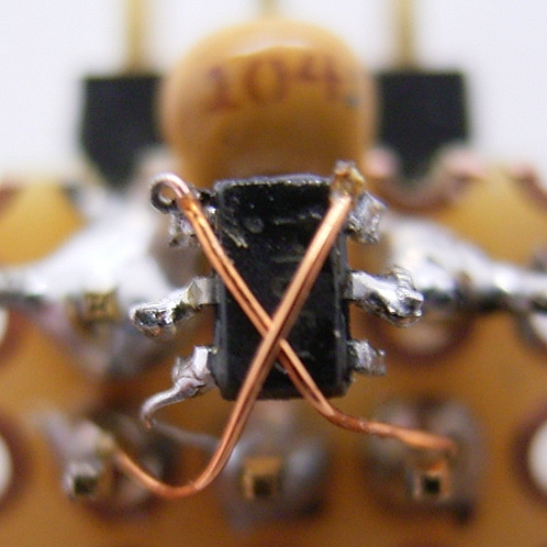 Tiny10 wird auf eine Testplatine gelötet. Darauf ist gleich der