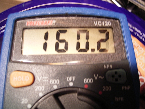 zu hängen. Dabei kam ein Widerstand von 159,8 Ohm (-0,4 Ohm) heraus.