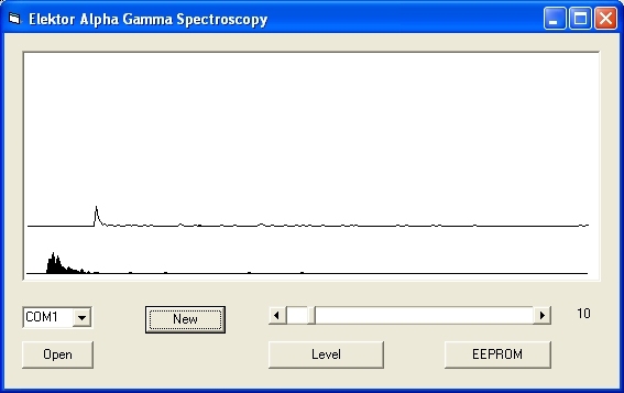 angeschlossen. Ein AM241-Strahler aus einem Ionisations-Rauchmelder im