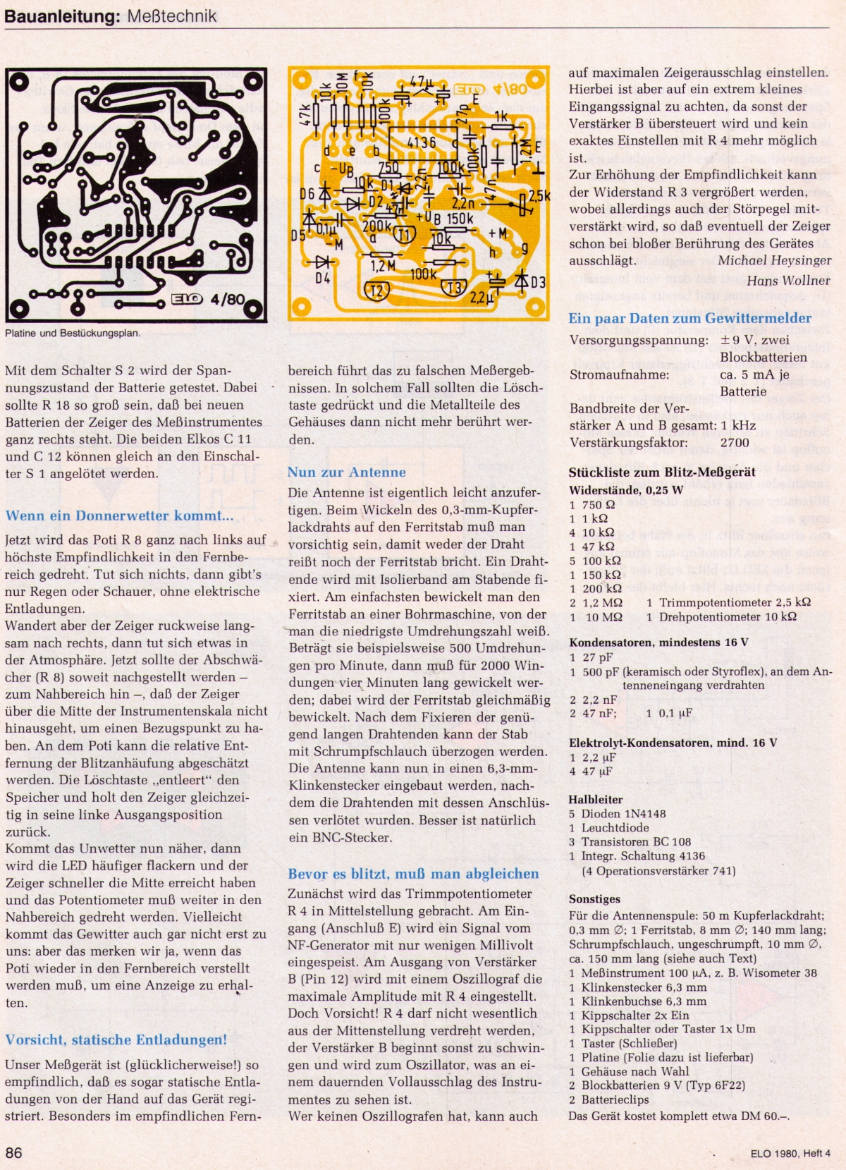von Michael Heysinger und Hans Wollner , ELO 4/1980
