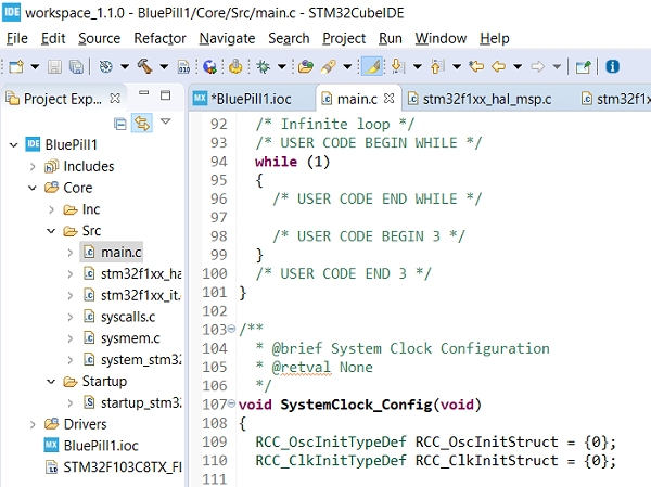 Programm heißt jetzt BluePill1Cube.hex. Zum Test habe ich den Chip